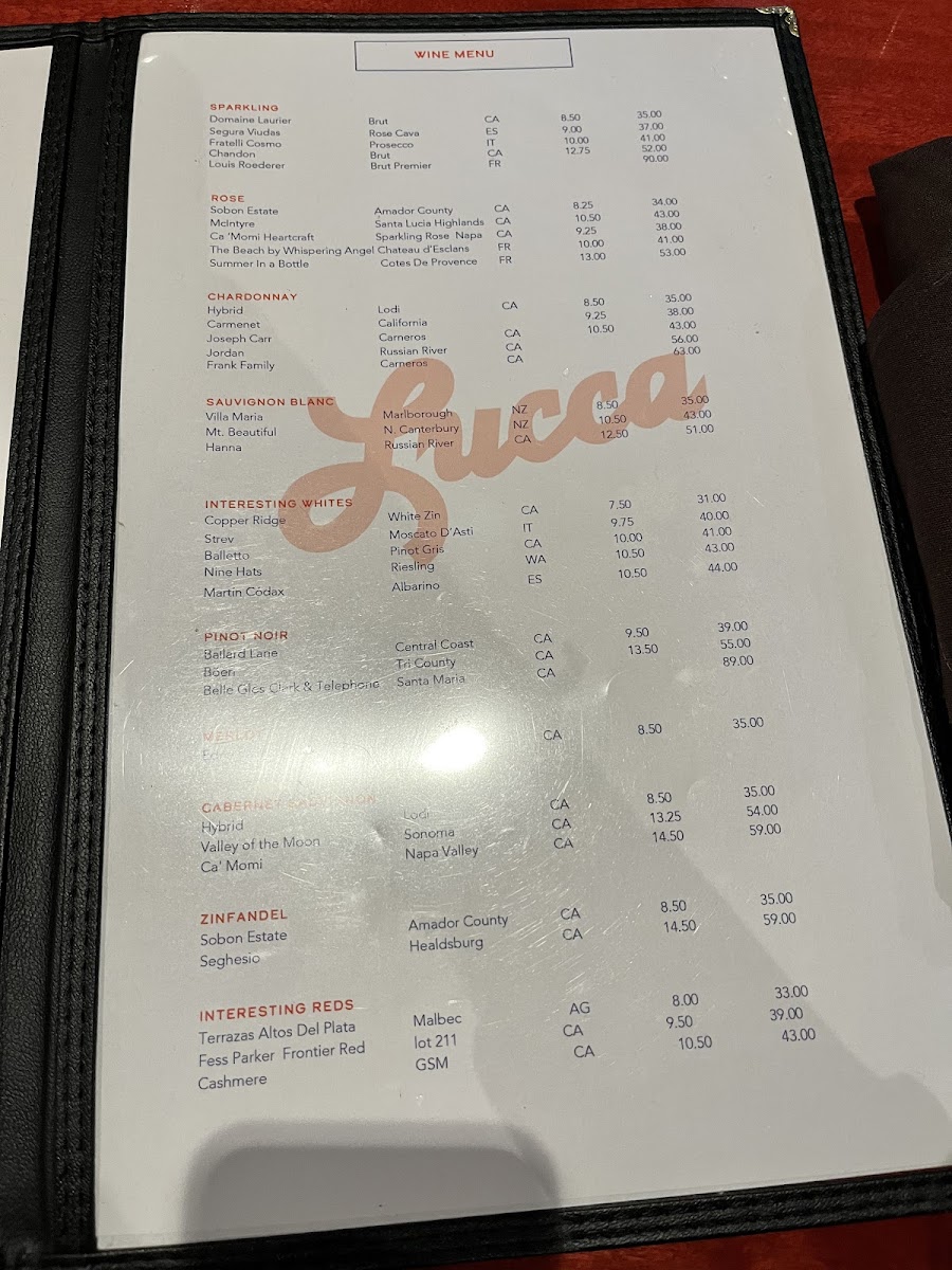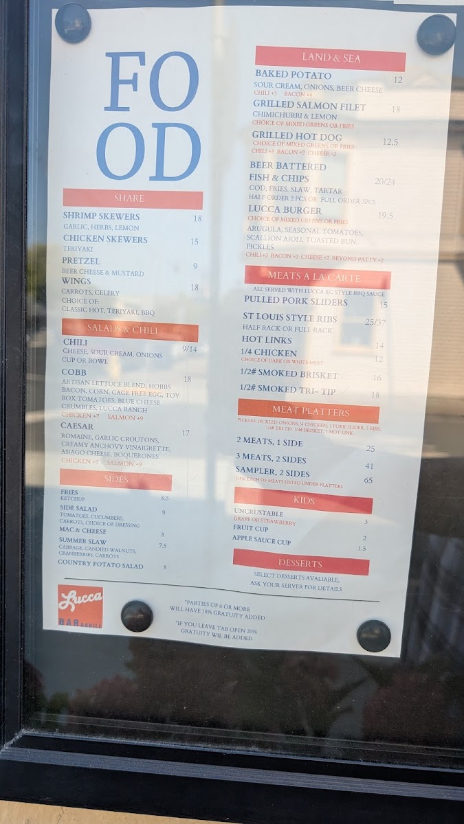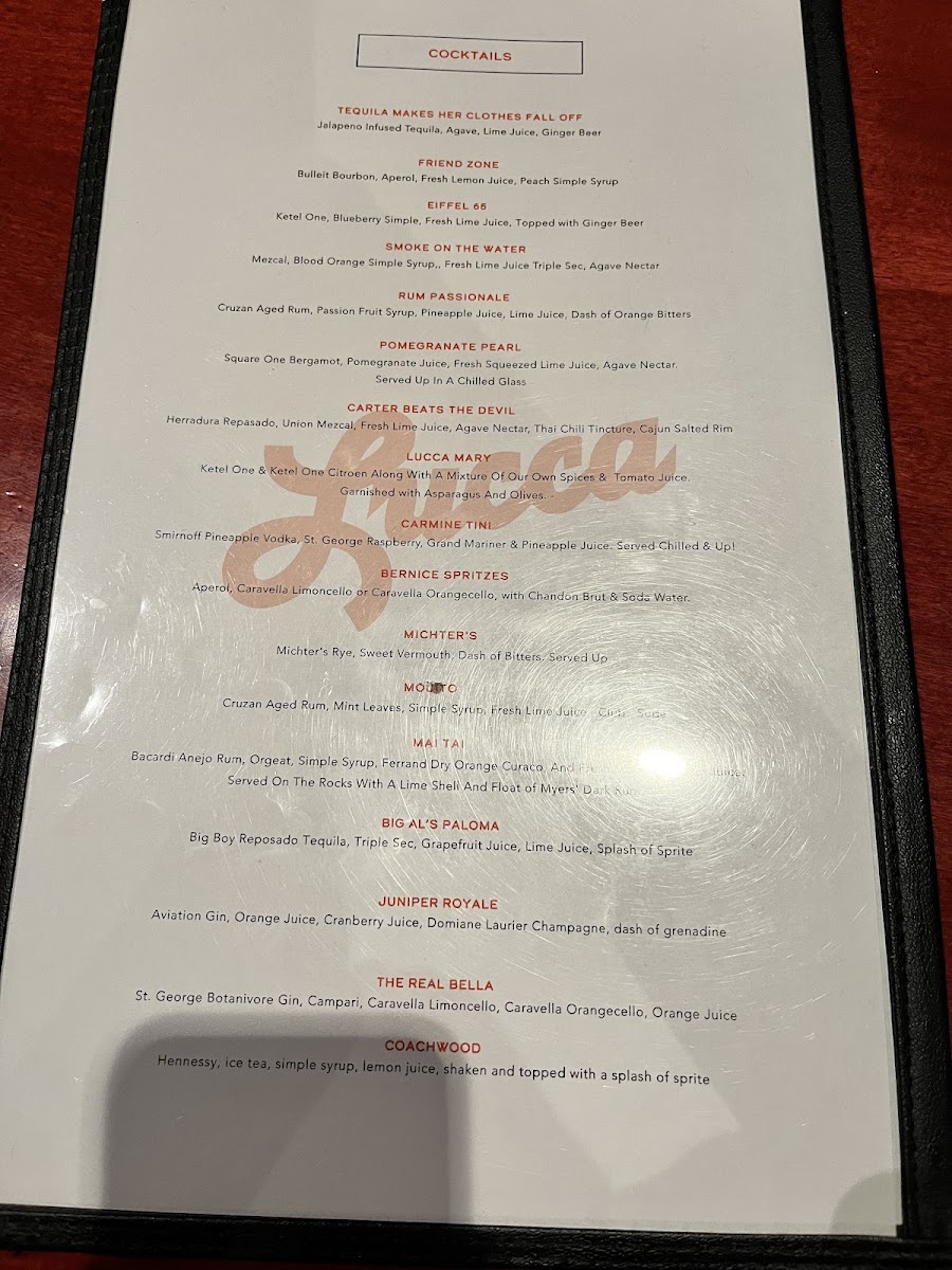 Lucca Bar & Grill Menu